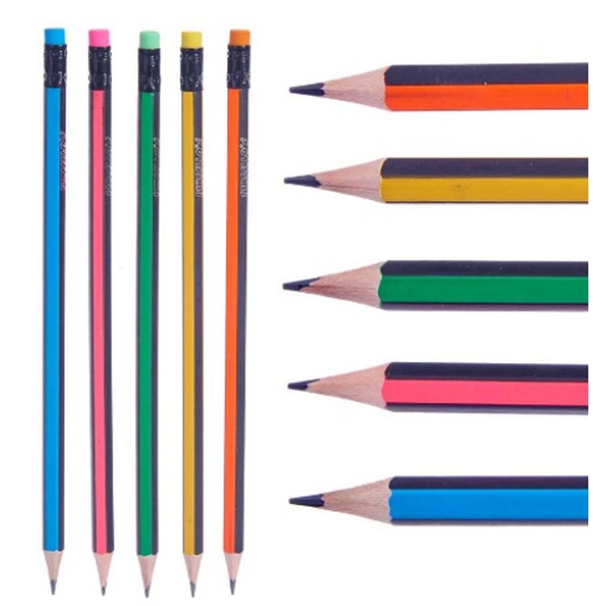 Pencil Set Pincello 473 Yellow Blue Green Multicolour Orange Stripes (12 Units) and be the envy of your colleagues!
